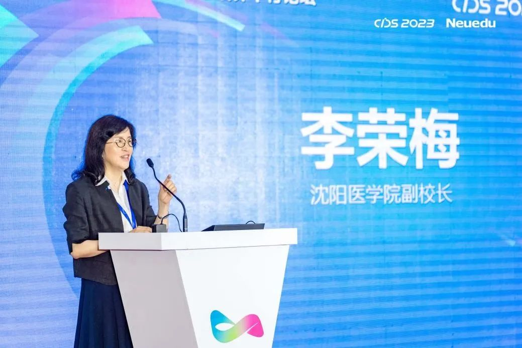 沈阳医学院副校长李荣梅教授作题为《聚焦医工结合推进教育链、产业链、创新链融合》的报告。她讲述了沈阳医学院在新医科、新工程相结合的背景和探索下,所实施的医工结合的“沈医实践”道路上的新形式。未来将重点打造“医疗健康科技产教实训中心”,计划实现学生实训、科学研究、专业建设、社会服务等职能。紧密围绕区域新医科、新工科产业集群开展需要,整合资源,集聚力量,精准服务地方医疗开展,全面提高人才培养能力,助力谱写中国式现代化辽宁新篇章。