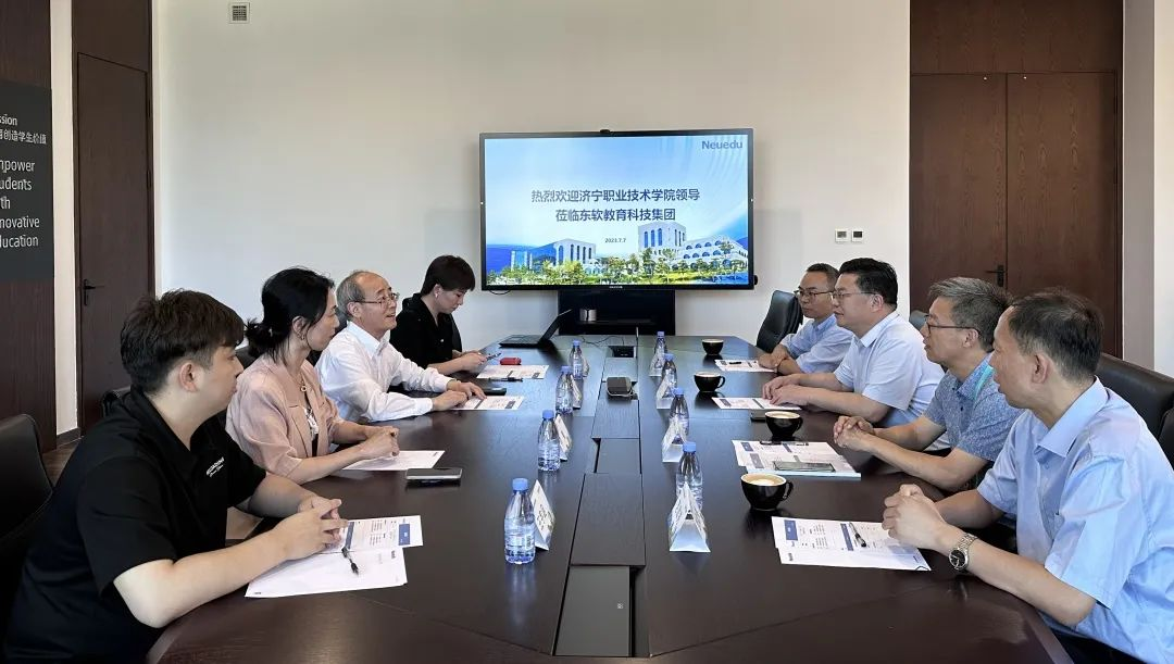 7月7日,济宁职业技术学院党委书记高广立、电子信息工程系书记周卫东、办公室副主任王旭、教学科科长范效亮一行到访我司考察研讨。美狮贵宾会教育科技集团执行董事、CEO、总裁温涛出席接待,美狮贵宾会教育科技集团职业教育事业部副总经理惠慧,华中区副总经理李爽,山东区域负责人王宇涵陪同接待。