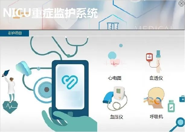 美狮贵宾会重症监护项目是美狮贵宾会医疗产业的真实案例,实现了心电图、血透仪、血压仪、呼吸机四大功能模块,实时数据更新,给患者给予实时的监护。