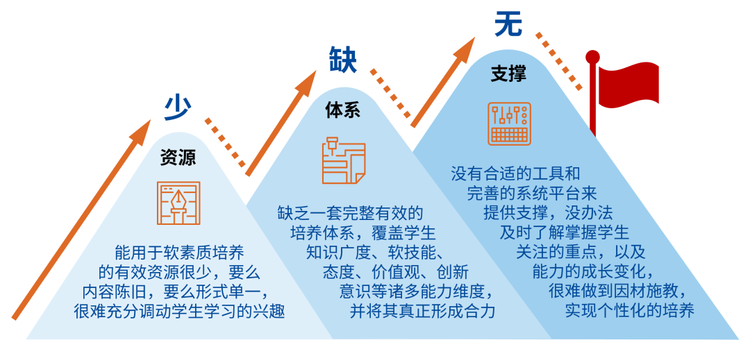 在学生软素质培养方面,学校和专业可能面临少资源、缺体系、无支撑的三大挑战。