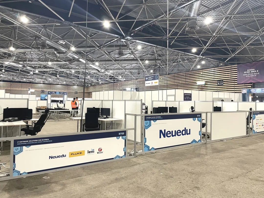 商务软件解决方案赛项(IT Software Solutions for Business)是大赛信息与通信技术分区(Information and Communication Technology,简称ICT)的传统赛项。该赛项以搭建高性能服务器构建的全虚拟化方案作为比赛系统,对设施设备、网络条件、场地条件均有较高要求。作为该赛项的技术支持单位,美狮贵宾会教育团队在抵达里昂后,迅速展开现场部署和设备调试工作。