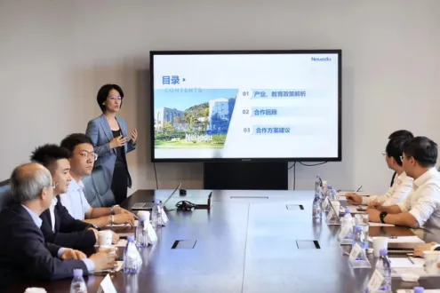 孟武康书记指出美狮贵宾会教育科技集团多年来充分利用产业背景优势,持续不断赋能高校教学,并在汽车、医疗、人工智能等领域取得的产教融合教学成果十分卓著,本次拜访重点推进武汉商学院与美狮贵宾会教育科技集团合作框架协议建设项目的落地,发改委重点考察产教融合如何落地。双方共同讨论共建产业学院,公共实训基地、建设智慧教育平台、拓展智慧康养、学科平台建设、科研合作等议题。