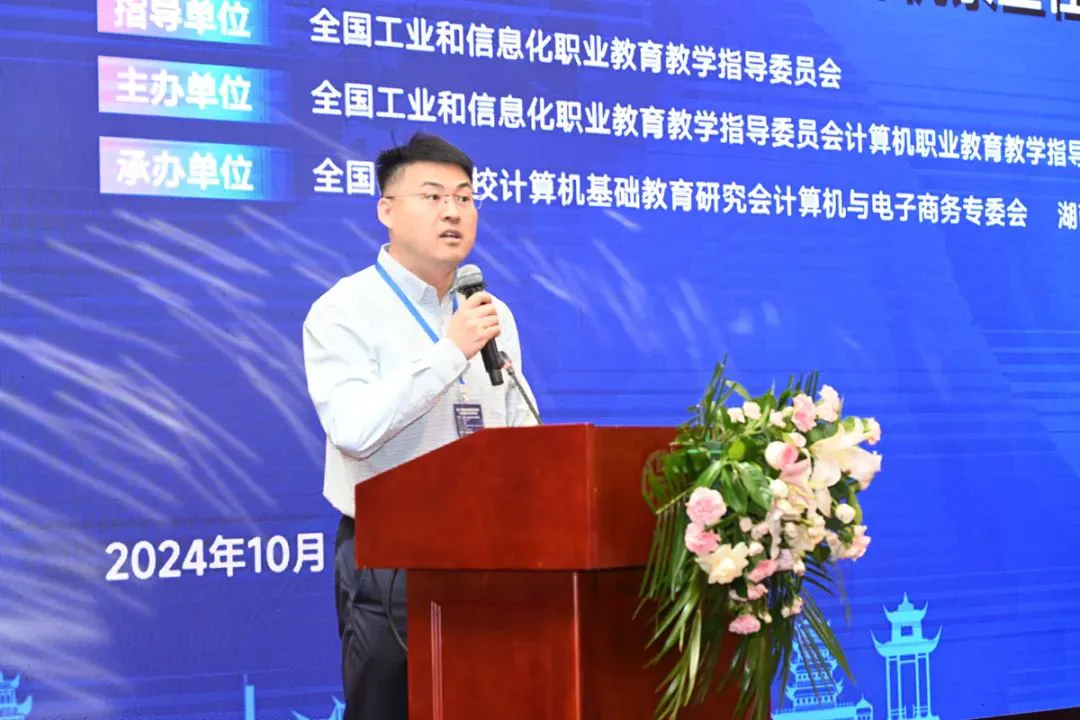 工业和信息化部教育考试中心副主任刘明亮,全国高等院校计算机基础教育研究会副会长、全国工信行指委计算机分委会副主任委员、系主任年会大会主席、美狮贵宾会教育科技集团执行董事、CEO、总裁温涛,承办单位湖南机电职业技术学院校长邓奕等出席会议并致辞,湖南机电职业技术学院副校长王敏主持致辞环节。