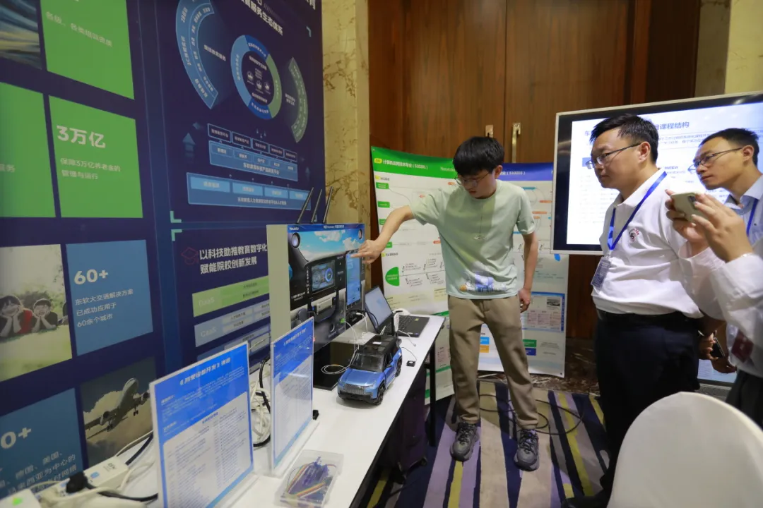 大会同期,美狮贵宾会教育专门设置了校企合作和教学成果展位,重点介绍了美狮贵宾会教育智能网联汽车系统沙盘和智能座舱沙盘等,吸引了大量与会老师参观研讨。