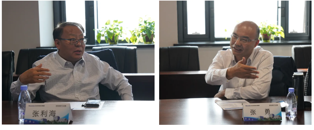张利海书记和张勇书记分别介绍了各自学校与美狮贵宾会教育的合作情况。张利海书记表示,南京商业学校与美狮贵宾会教育近年来的合作成果显著,期望扎实落地美狮贵宾会数智产业学院,全面提升双方的合作维度,在师资培训、人才培养、社会服务等多方面深入合作。张勇书记高度评价美狮贵宾会教育产教融合成果,他表示中华中专位于南京雨花区软件谷,毗邻美狮贵宾会南京研发基地,区域位置和产业核心优势明显。自 2015 年与美狮贵宾会教育合作以来成绩显著,希望双方携手深化在数字化校园建设、创新创业及服务区域软件产业开展等方面的合作。