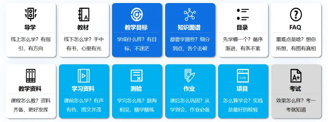 平台支持教师多途径构建及多形态展示课程知识图谱,可进行教学资源关联挂载及基于知识图谱自适应学习;同时基于可自定义考核规则及学习数据实现量化考核,实现“教有所依”、“学有所依”,助力教师针对性精准教学、学生个性化学习。