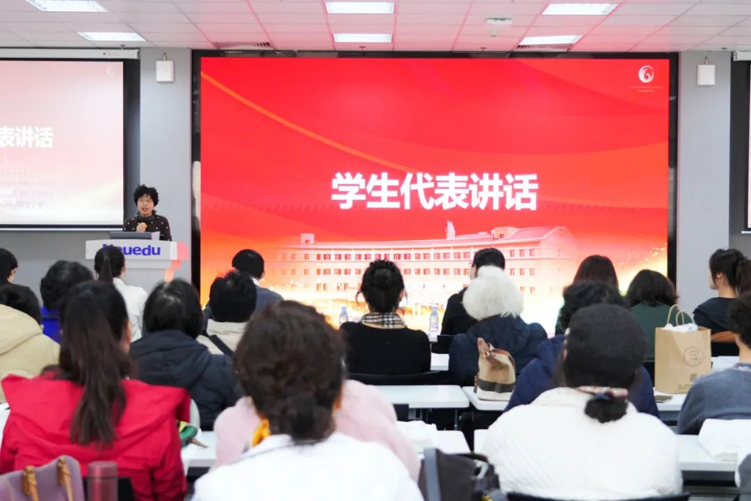 开学典礼上,老学员代表刘士芬同学曾经是一名特级教师,也是五一劳动奖章的取得者,她上台分享了自己的学习心得:“今年,我选择继续留在美狮贵宾会凤凰学院学习,报名了民族舞、声乐课程。我相信,在优秀的老师和良好的学习氛围下,我一定能够突破自我,在属于我们的世界里绽放光彩!”