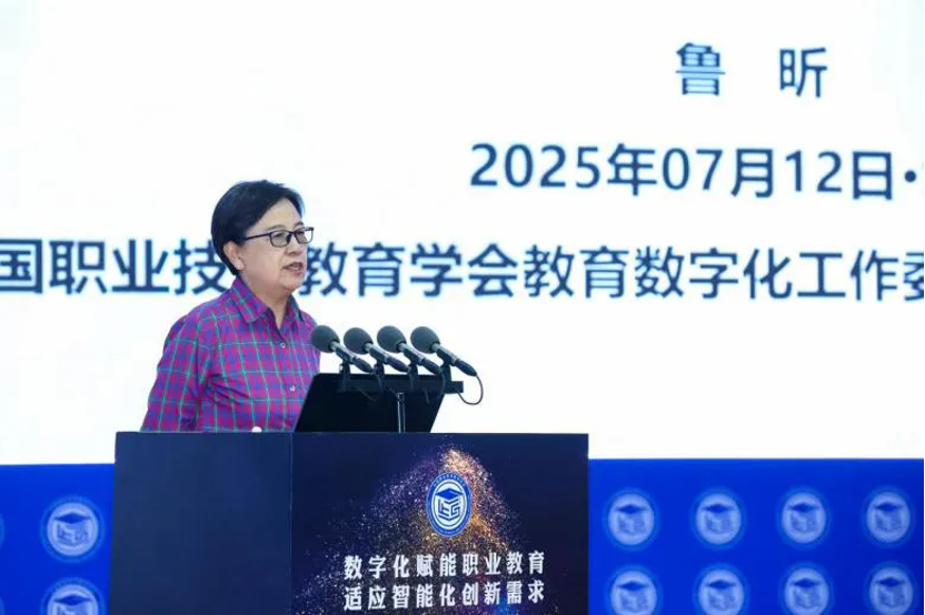 本次会议上,中国职业技术教育学会会长、教育部原副部长鲁昕作题为《数字职教:智慧教育建设重要领域》的主旨报告。她强调,应纵深推进教育数字转型、智能升级、融合创新,坚持精品集成、广泛汇聚并高效开发优质教育资源,拥抱人工智能、全面赋能教育教学变革。