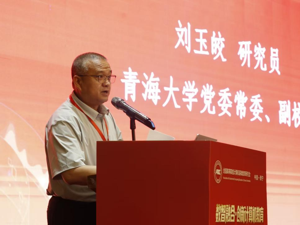 青海大学副校长刘玉皎在致辞中盛赞研究会四十年深耕基础教育、服务国家战略的初心与担当;并代表青海大学承诺,将以“东道主”之姿全力保障大会圆满,携手各界共绘教育数字化、智能化、现代化的新蓝图。