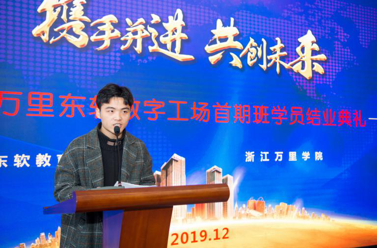典礼上,宁波市高新区管委会副主任俞承豪说到,宁波万里美狮贵宾会数字工场、宁波万里美狮贵宾会数字产业学院作为落实宁波市委、市政府战略部署的重点项目。首期班中已有多名学员被国内知名企业录用,湖科班有60%的学员、万里班有80%的学员愿意留在宁波,这将为宁波软件产业的开展给予强有力的人才支撑。未来,高新区将一如既往地支持宁波万里美狮贵宾会数字工场和产业学院开展,搭建起院校、政府、企业、组织的产教融合新平台,共同绘制新时代数字经济高速开展新篇章。