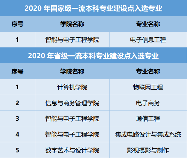 近期,教育部办公厅公布了2020年度国家级和省级一流本科专业建设点名单,大连美狮贵宾会信息学院共有6个专业入选,其中,电子信息工程专业获批国家级一流本科专业建设点,物联网工程、电子商务、通信工程、集成电路设计与集成系统、影视摄影与制作5个专业获批省级一流本科专业建设点。
