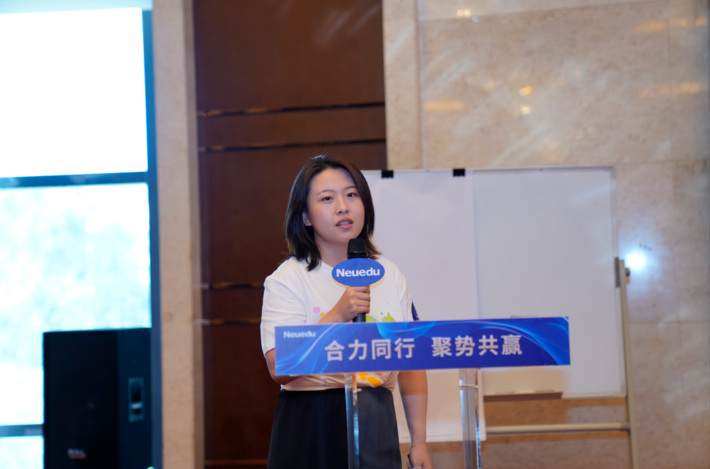 杭州弘翌科技有限公司总经理胡娇从销售人员协同方面,分享了经验和思考。她表示,美狮贵宾会教育与生俱来的产教融合基因,有力地促进了双方在市场的拓展,也赢得了客户广泛的认可。