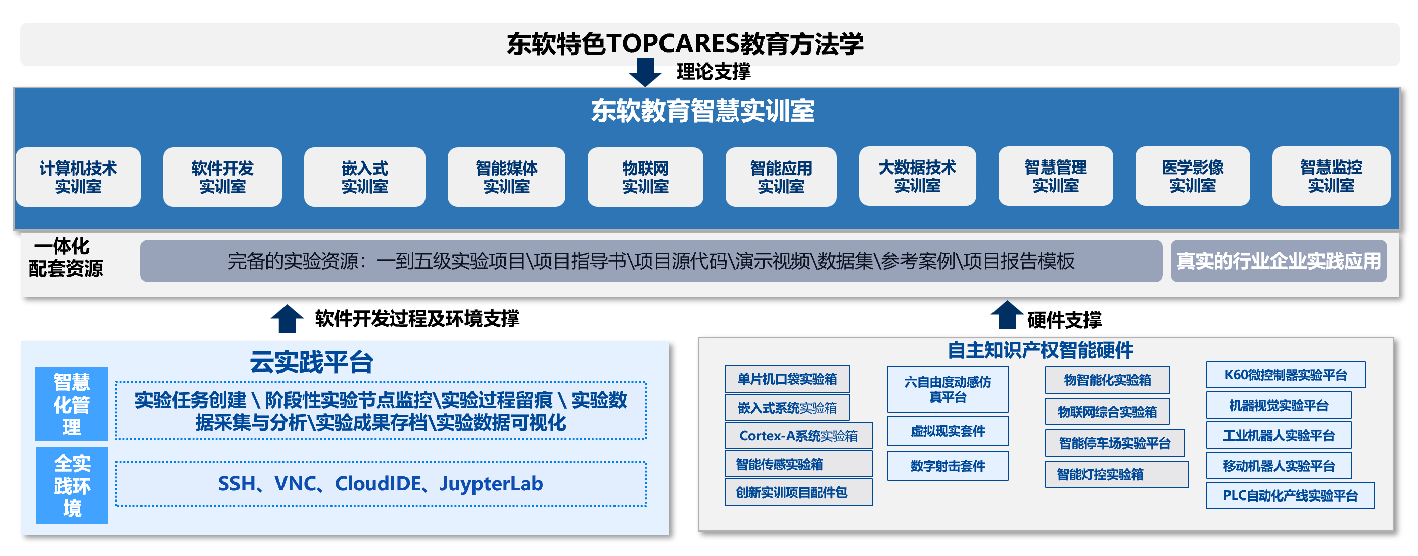 本实训室依托于实验云实践平台,为教师给予便捷的实验设置、阶段性实验过程监控及成绩统计分析,为学生给予随时随地实验预习复习、实验成果上传与成绩查看,全面提高实验教学管理的质量及效率。同时,实验资源在平台部署,实现资源信息化管理和应用。