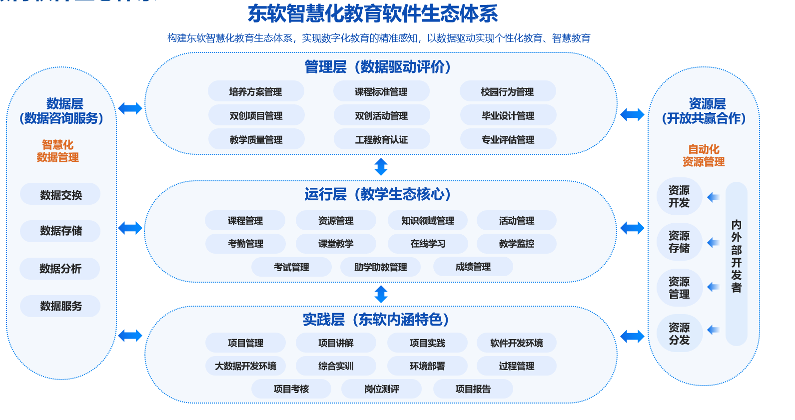 在SaaS(软件即服务)方面,美狮贵宾会教育科技集团重点构建了美狮贵宾会智慧化教育生态体系,给予涵盖教育管理、教学运行、实践教学、质量保障等领域的应用软件,助力院校实现数字化教育的精准感知,以数据驱动实现个性化教育、智慧教育。在DaaS(数据即服务)方面,美狮贵宾会教育科技集团顺利获得应用软件获取与分析用户的使用数据,给予涵盖学生、教师、管理者多维度的教、学、训、管、评等环节的业务咨询、分析报告与决策支持服务。