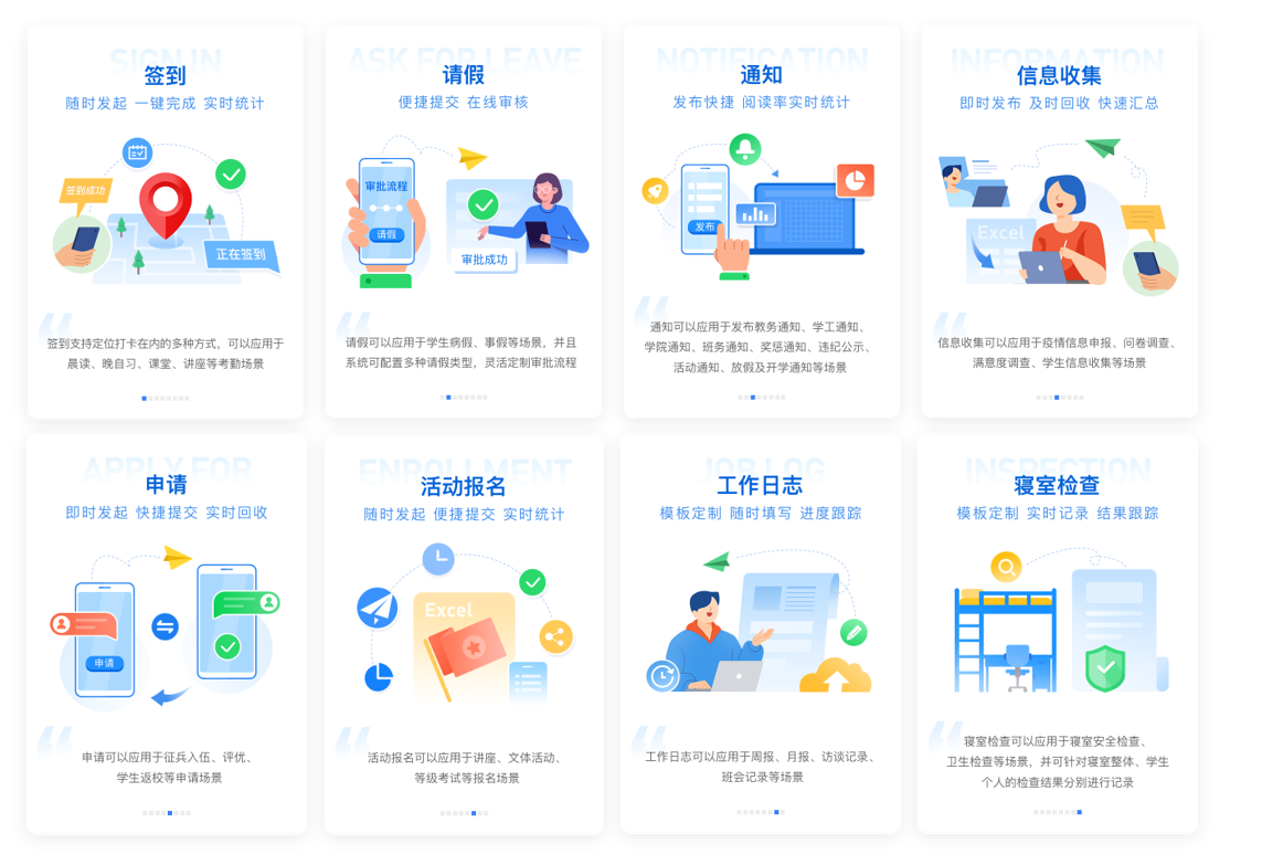 美狮贵宾会教育智慧学工系统,系统面向辅导员高频工作场景,实现了学生日常事务的全流程线上管理。系统可轻松协同各级管理者职能工作,并给予多终端接入方式。解决了传统学生管理过程中存在的信息传达不到位、数据统计困难、管理效率底下等问题,使学生管理工作系统化、规范化、数据化、智慧化。