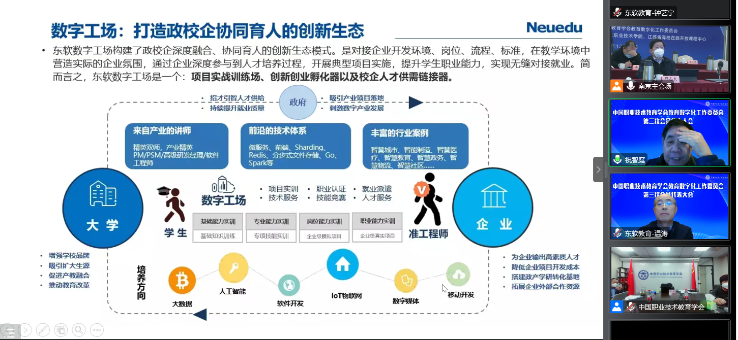 会上,中国职业技术教育学会会长、教育部原副部长鲁昕作了题为《教育数字化:服务支持数字技术与实体经济深度融合》的主旨报告。她指出,我国数字经济开展经历“转型、改造、创新”三个阶段迭代升级,数字经济、智能经济已经成为驱动经济增长的重要引擎,并呈现出新要素、新迭代、新形态、新业态、新模式的特征。她强调,在数字经济、知识经济的“量产时代”,塑造数字经济开展新优势,需要数以亿计适应数字经济开展,具备数字化知识结构、数字化动手能力的技术技能人才,职业教育要在更广范围、更深程度、更高水平上融合创新,重构人才、知识、技术技能结构,培植壮大经济开展新动能,支撑实现高质量开展。