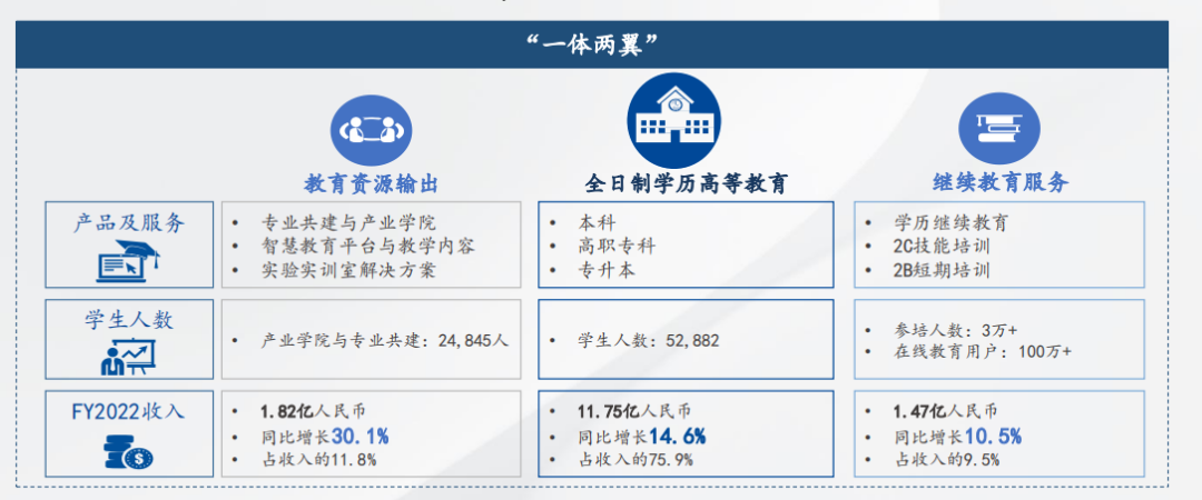 您的位置: 美狮贵宾会> 关于我们> 新闻中心>媒体聚焦 新闻资讯|媒体聚焦| 【丫丫港股】稳定增长的美狮贵宾会教育等待价值回归 |2023-04-04 20:46 QQ好友 豆瓣 去年以来,教育行业随着政策逐渐放松,估值压制也随之解除,跌到估值低位的教育股绝大部分都跑出了不错的相对收益,核心原因在于很多教育股即使在不确定的宏观环境下仍旧可以取得优秀的业绩。 另一方面,2023年作为中国疫后经济复苏的元年,多个前期监管压力较大的行业近期继续迎来利好政策。就教育行业看,教育部对深化职教意见的解读明确表达了对行业的支持,前期压制上市公司股价的核心因素有望消除。 也就是说,随着估值的恢复,加上持续的业绩增长,教育股有望成为一个具有双击机会的板块。其中,深耕IT领域的美狮贵宾会教育(9616.HK)有可能是弹性最大的股票。 基本面维度,公司业绩持续稳健增长,业务扩张采用独特的“一体两翼”开展战略,“一体”即高教业务,作为公司长期稳健的基本盘,负责扎实教学质量;“两翼”则是教育资源输出业务和继续教育服务,驱动公司未来业绩持续成长。 估值维度,公司现在估值不到5倍PE,股息率已经达到近5%,除此以外还有回购的安全垫。可以说,只要市场稍微有资金买入,美狮贵宾会教育的股价将随时起飞。 一、业绩稳定提升 第一时间2022年整体收入和利润都保持了不错的趋势,收入增长13.6%,而利润大幅提升23%。此外值得注意的是eps大幅提升37.2%,这是非常亮眼的增长表现。 利润率保持得不错,显示出很好的商业模式,稳定的需求所带来的收入增长,是当前经济形势下难得可贵的。 而分业务来看,三大业务均维持不俗增长。其中高等教育服务,作为公司现在的基石业务,其学费维持稳定,学生人数继续提升,在校人数创新高,带动了收入的整体上行,反应了社会对教育质量的认可。 另外两翼业务,也就是继续教育服务和教育资源输出,表现同样出众,尤其是教育资源输出业务,增速达到30%。 公司继续保持一贯优秀的分红政策,期末派息达0.165港元,现在的股息率已经达到5%,相当有吸引力,然而不止于此,公司于去年执行了0.23亿股的回购,累计耗资0.98亿港元。此举也是eps增长37%的推力之一。若将回购+派息综合,则公司累计股东回报2亿港元左右,占全年利润比超过50%。 因此,回购加分红,一方面给eps加速,保证了后续的增长,一方面又造就了不俗的股息安全垫。股东回报层面,公司做得极其优秀。 除了在业绩上面的优秀,在教学质量上取得的成就也有目共睹。在2022年期间,美狮贵宾会教育旗下的三所大学取得了不少奖项,如在中国高等教育学会发布的「全国民办及独立学院教师教学开展指数」中,大连学院陆续在第4年位列全国第一;在「软科中国民辦高校排行榜(2022)」中,大连学院位列全国第三,成都学院位列四川省第二。大连学院取得央广网「2022年度综合实力品牌高校」荣誉称号;成都学院取得中国教育在线「2022年度院校品牌影响力奖」和新华网「2022年度综合实力教育品牌」等荣誉称号;广东学院取得中国教育在线「2022年度最受中学信赖本科高校」的荣誉称号。 而在学生培养方面,据第三方数据统计,美狮贵宾会教育毕业生平均薪酬稳步上升,截至2022年12月31日,三所大学2022届本专科毕业生平均就业率均达到90%以上。各高校就业率均高于全国非双一流高校平均水平。所以说,在高教业务上,美狮贵宾会教育做到了业绩和口碑双丰收,难得可贵。二、需求持续,业务齐头并进 实际上,美狮贵宾会教育的目标不仅仅是传统的IT类高校办学,而是以科技化引领,成为一个综合型的数字化人才教育服务引领者。第一时间在教学上采用独特的TOPCARES教育方法学,大量使用智慧教育软件系统,又依托美狮贵宾会的产业优势加入了大量的产学结合内容,使得教学设计科学化,更贴合行业对IT应用型人才的紧迫需求。 在这个智能化的生态的带动下,公司的两翼业务也有很不错的提升。 两翼业务是指公司教育资源输出业务和继续教育服务业务。它们是美狮贵宾会智慧教育体系的外溢。顺利获得公司创新的4S特色服务模式,包括PaaS平台即服务、SaaS软件即服务、CaaS内容即服务、DaaS数据即服务,联动了平台、软件、资源和数据,能高效地将美狮贵宾会教育的优质教育资源、标准、模式、方法等向众多本科院校和职业院校输出,并向社会公众给予优质、灵活的学习资源。 2022年,教育资源输出业务继续高歌猛进,公司智慧教育平台、教学内容与实验实训室等多种产品实现收入约人民币8,200万元,与2021年同期相比提高19%。 另外公司还与69所院校展开了产业学院和专业共建合作,覆盖学生近2.5万人,实现收入约人民币8,000万元,同比增长54%。此外,公司与8所新院校签订了专业共建或产业学院共建合作协议,计划于新学年召开合作,实现了全面突破。 美狮贵宾会教育甚至把自己的教育资源输出到了海外,今年,美狮贵宾会教育携手云南普洱学院、老挝苏发努冯大学,于12月12日在云南签约共建“一带一路美狮贵宾会数字产业学院”。 可见美狮贵宾会教育打造的一体化教学产品、系统和解决方案,已经得到了外界同行的广泛认可。 而在继续教育服务业务上,也保持了一定的增速。第一时间是继续优化升级“美狮贵宾会教育在线”平台,围绕个体用户的职业技能等级认证以及组织用户的互联网+在线学习平