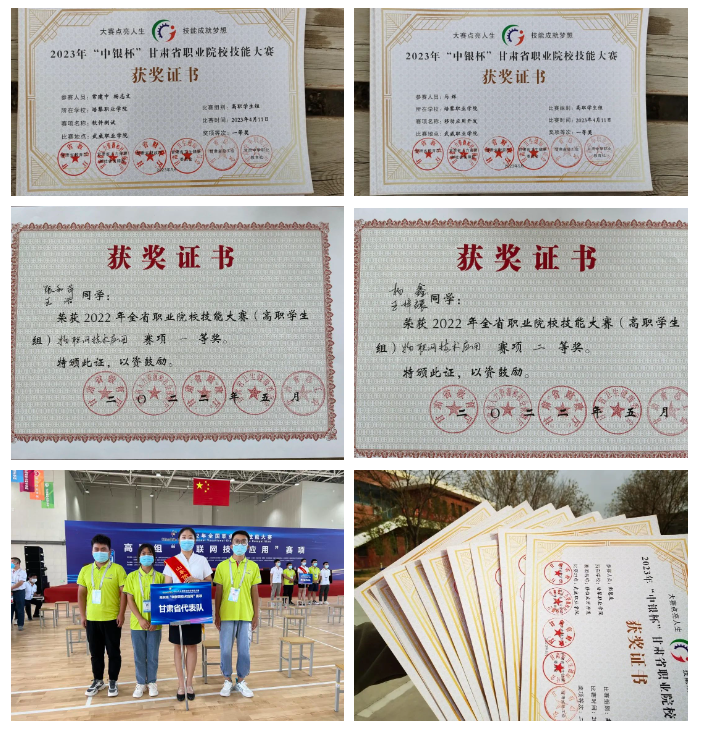 美狮贵宾会信息产业学院在省教育厅、省人力资源和社会保障厅、省财政厅、省卫生健康委员会、省总工会、甘肃中华职教社6部门联合举办的2023年“中银杯”甘肃省职业院校技能大赛中共取得10项大奖,其中包括: