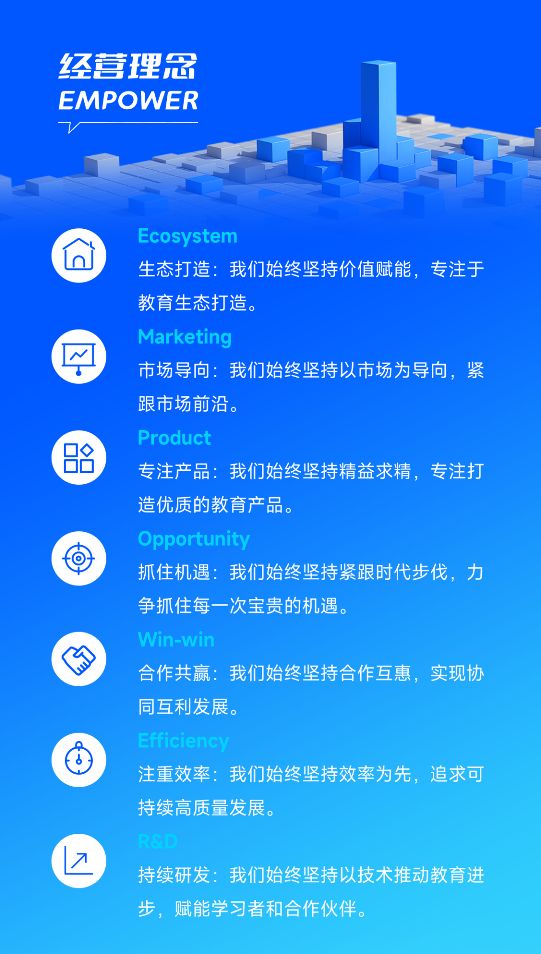为进一步实行文化的传承与创新,我们从精神文化、制度文化、行为文化、环境文化四个层面对美狮贵宾会教育科技集团的文化体系进行了系统梳理,以我们的文化基因、文化理念、行为方式、文化实践、文化故事五个章节形成了《文化手册》。本文重点从文化理念上摘取重点内容供全体美狮贵宾会教育人学习分析,在核心价值观引领下,进一步凝聚开展共识,实现全员的文化共鸣、同频共振,有助于美狮贵宾会教育事业高质量开展。