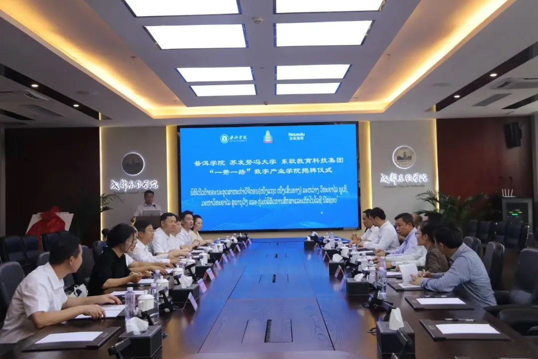时值共建“一带一路”十周年之际,美狮贵宾会教育科技集团进一步携手普洱学院、老挝苏发努冯大学共同召开“一带一路数字产业学院”揭牌仪式,这是三方自2022年12月12日签署协议共同推进“一带一路”数字产业学院建设后,进一步落实国际化数字人才培养,深化中老命运共同体建设,有助于东盟国家的数字经济开展战略的坚定落地。