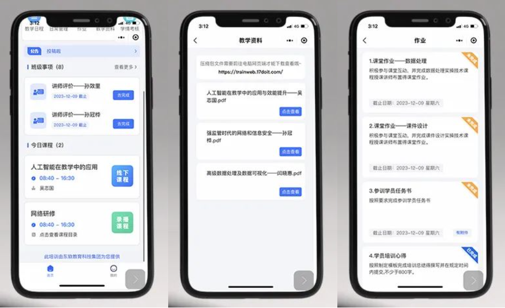 本次培训的过程管理使用美狮贵宾会教育科技集团自主研发的培训信息化管理平台“掌培云”,培训全过程进行信息化管理。学员利用“掌培云”小程序及网页端,完成课程查看、项目评价、资料查询及作业提交等工作,所有内容信息化存档。