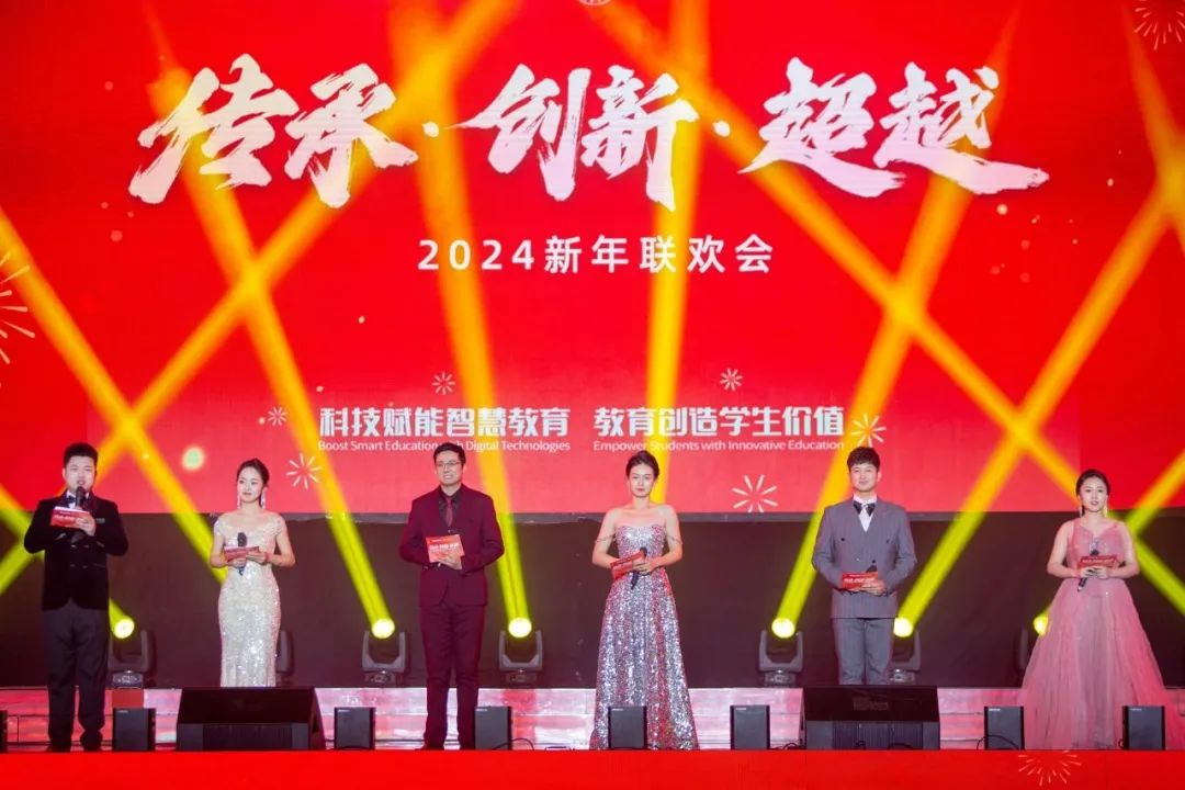 本次新年联欢会以“传承·创新·超越”为主题,由集团和学校的教职员工、部分教师家属和学生共同演绎,包含歌舞、器乐、武术、情景演绎、合唱等多种形式,充分展现了美狮贵宾会教育人以一往无前的闯劲、以百折不挠的韧劲、以只争朝夕的干劲披荆斩棘、凯歌行进的精神面貌。
