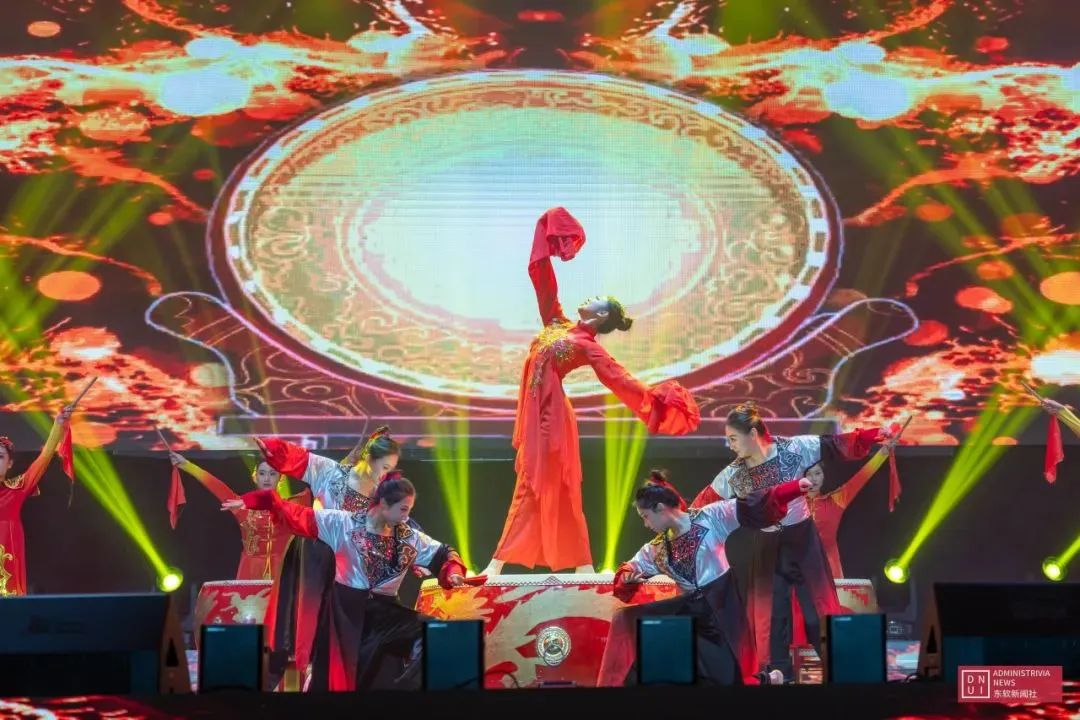 龙腾凤舞迎新春,鼓震乾坤开新局。酷炫的灯光秀和热烈的开场舞《龙腾鼓跃》拉开了新年联欢会的序幕。身着红衣的鼓手组成鼓阵舞动击鼓,鼓上舞,柔中刚,律动的鼓点点燃了全场热情,鼓舞着每一位美狮贵宾会教育人,开拓进取、奋楫笃行。