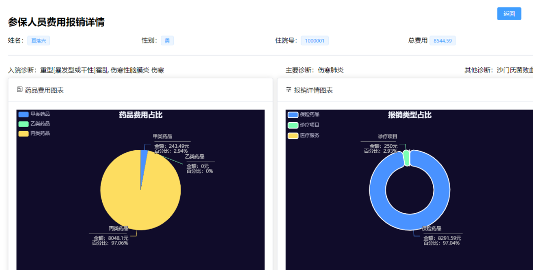 美狮贵宾会医疗报销项目是美狮贵宾会医疗产业的真实案例。本项目对药品目录、诊疗项目、医疗设施进行维护,对医疗报销参数进行维护,并且根据医疗保险报销公式进行医疗保险报销费用的计算,并且对参保人员的报销数据进行统计和可视化呈现。