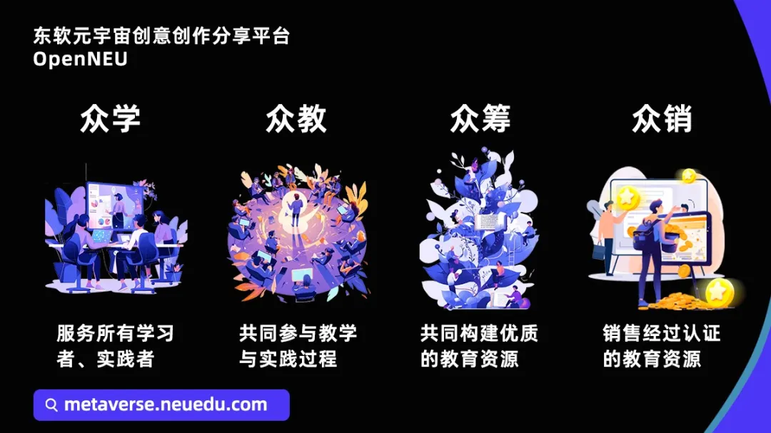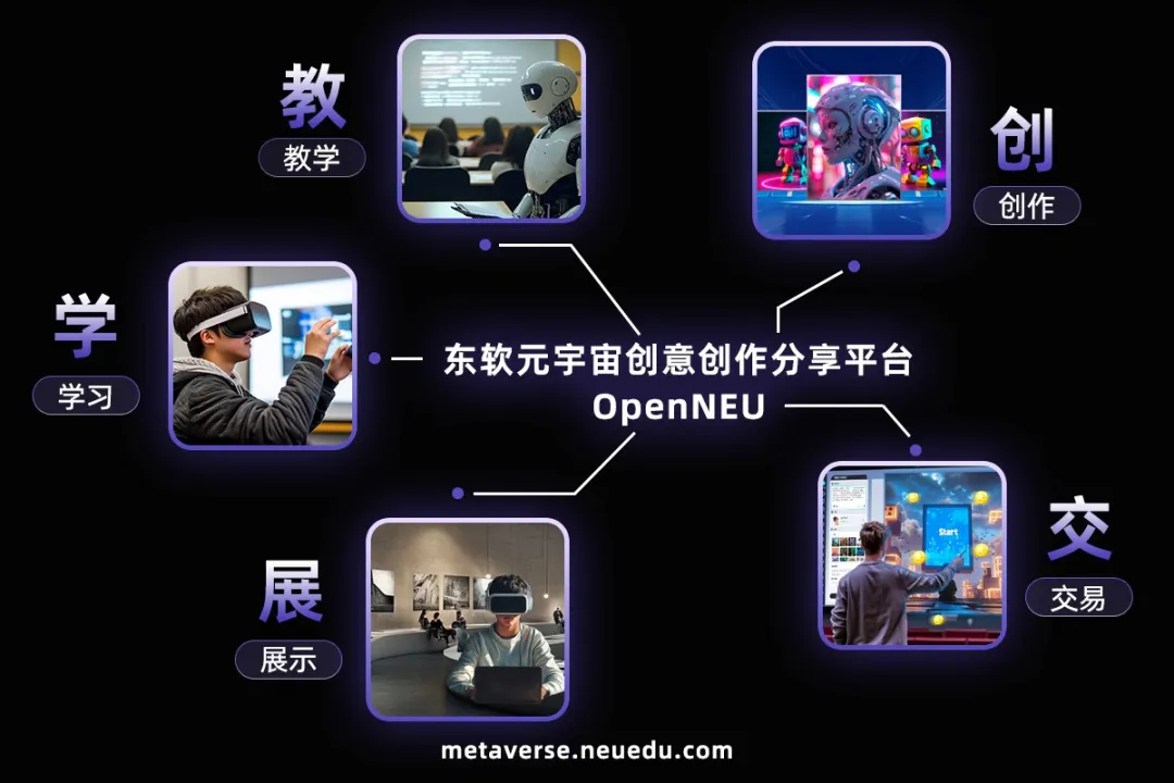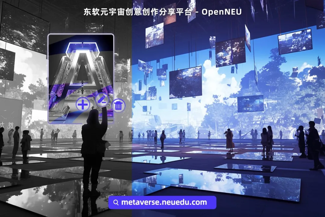 美狮贵宾会元宇宙创意创作分享平台-OpenNEU为师生和行业人员给予了一个元宇宙沉浸式共享空间,以UGC的形态构建个性化、便捷化、精准化的三维私域展示环境。