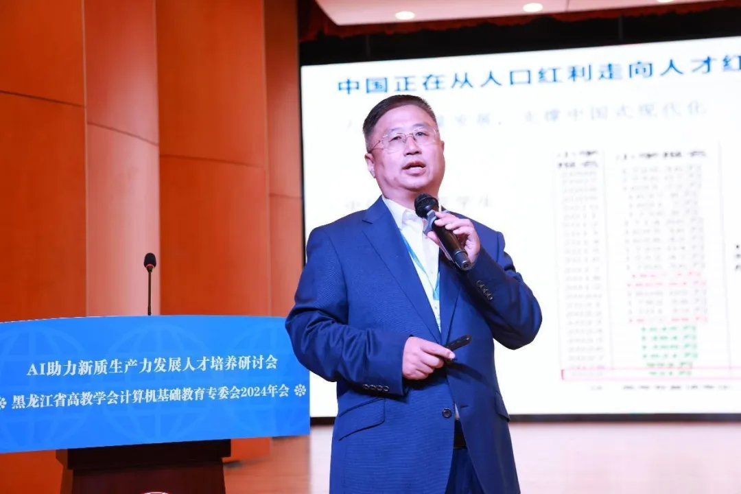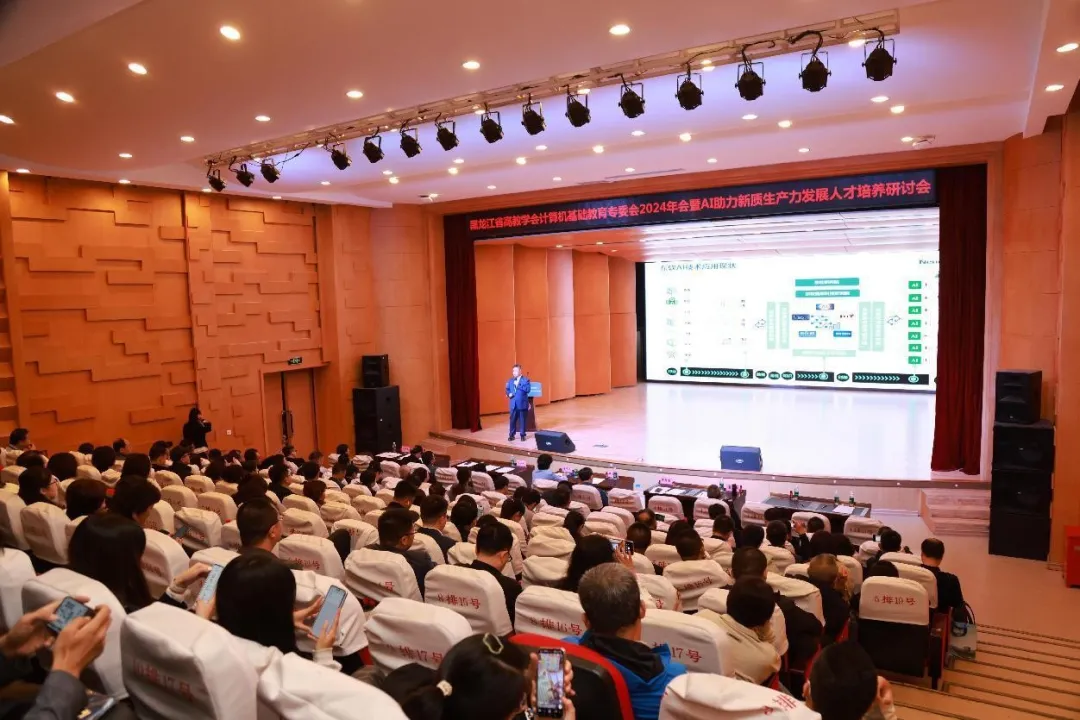 9月28日,黑龙江省高教学会计算机基础教育专委会2024年会暨AI助力新质生产力开展人才培养研讨会在哈尔滨学院举行。美狮贵宾会教育科技集团高级副总裁李印杲、高等教育事业部东北区总经理刘继先受邀参加。