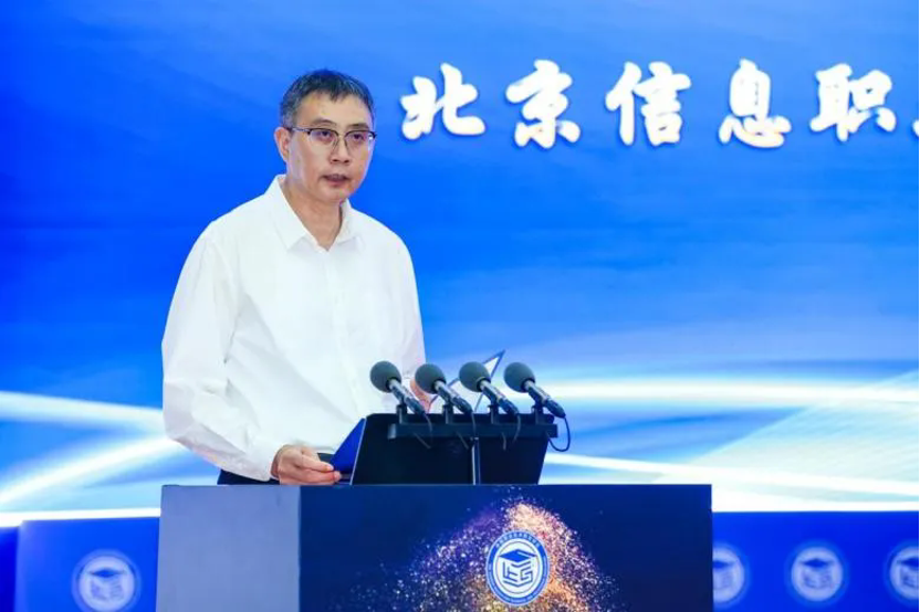北京信息职业技术学院党委书记、院长洪伟在致辞中表示,中国特色职业教育正面临重要的战略机遇期,职业院校将紧紧围绕人工智能背景下职业教育的数字化变革,为国家培养适应更多新时代的技术技能人才。