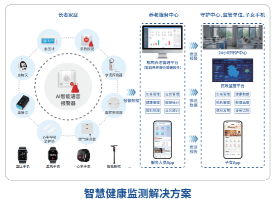 在科技赋能养老生态基础上,美狮贵宾会紧密遵循“推进数字中国建设”以及“人工智能融合民生保障”的国家战略导向,将技术创新确立为养老服务提质升级的核心驱动力。凭借强大的研发能力与完备的生态整合能力,团队聚焦康养产业数字化转型需求,构建了覆盖多场景、全生命周期的全方位智慧康养解决方案体系,其中包括长者监护、家庭养老床位监护、智慧健康监测以及适老化改造等具有针对性的系统解决方案。