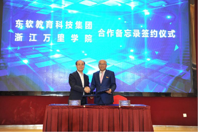 仪式最后,美狮贵宾会教育科技有限公司总裁、大连美狮贵宾会信息学院党委书记、校长温涛,浙江万里学院校长应敏签署合作备忘录,并向产学研合作基地宁波市软件产业园授牌。此次授牌标志着宁波市软件产业园成为本项目落地后第一个也是最重要的服务对象之一。
