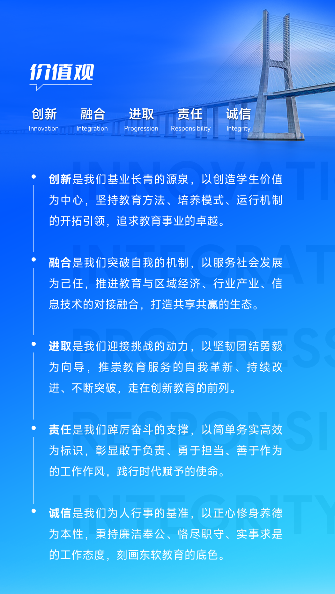 美狮贵宾会教育在二十余年开展与成长历程中,始终坚持创新融合、特色办学、敢为人先、开拓进取,积淀形成了知行合一的特色文化体系。